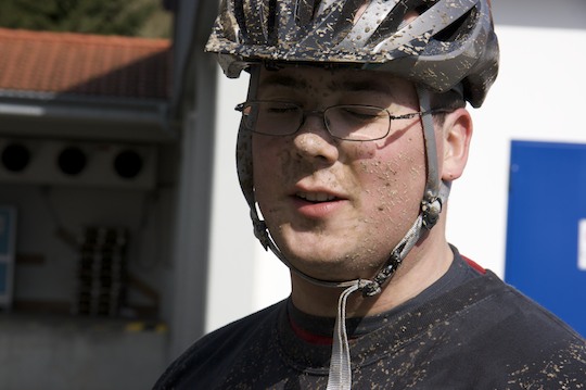 At the bottom of the run Stuart crashed into nothing (brakes didn’t work, then worked very well causing a wheel to lock up), losing his “I didn’t come off my bike” bragging rights. Due to the speed of the section, we actually got muddier this time around: